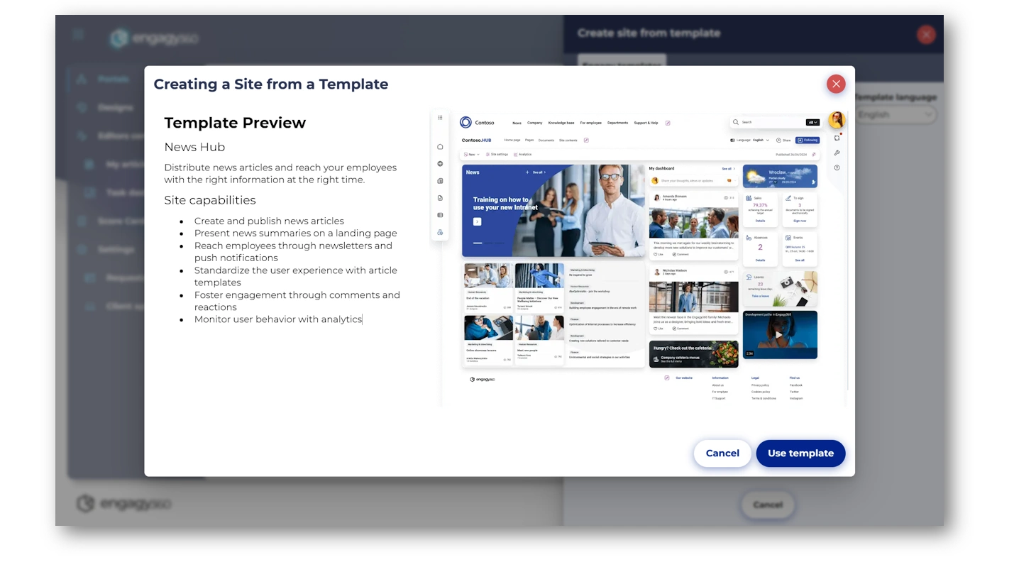 Designed for flexibility, the News Hub is available as a ready-to-use template, deployable instantly. Need customization? Easily adapt it to match your organization’s structure and communication style for a seamless fit in your digital workplace.