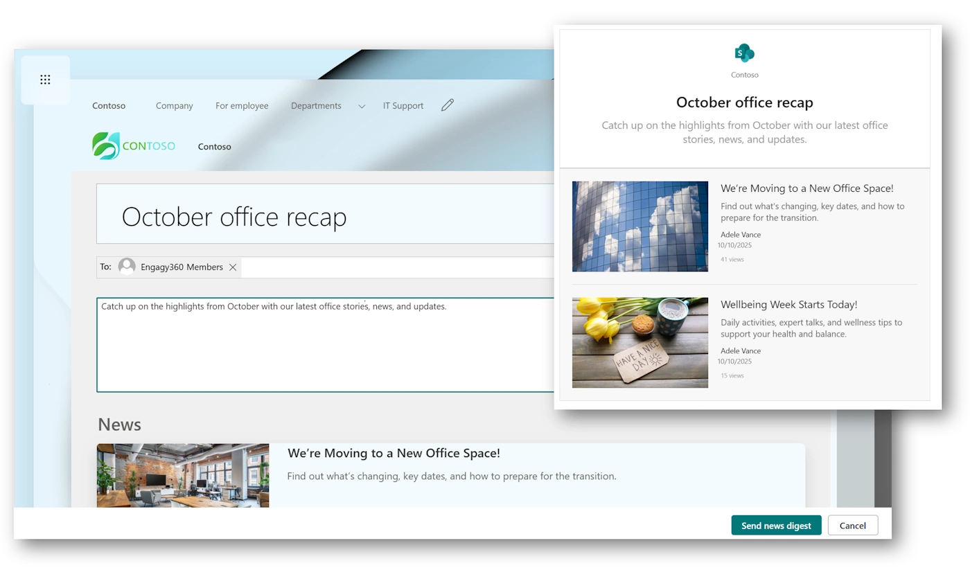 Centralize company news in one hub, making it easy for employees to stay informed and engaged