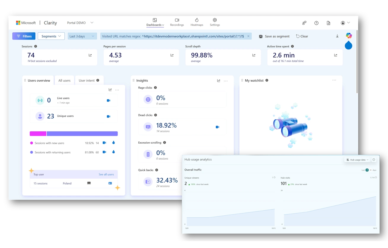 SharePoint provides basic usage stats, but deeper insights drive smarter decisions. With Engagy360, seamlessly integrate powerful tools like Google Analytics and Microsoft Clarity to unlock detailed reports, including page heatmaps. These insights help fine-tune your intranet and continuously improve engagement.